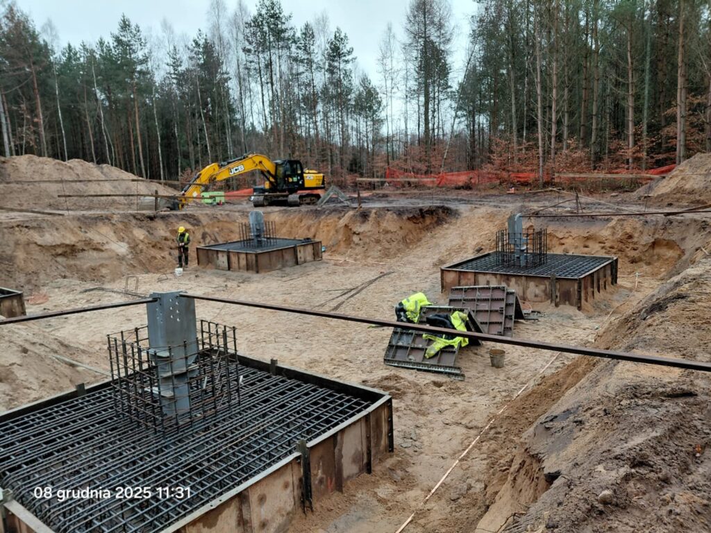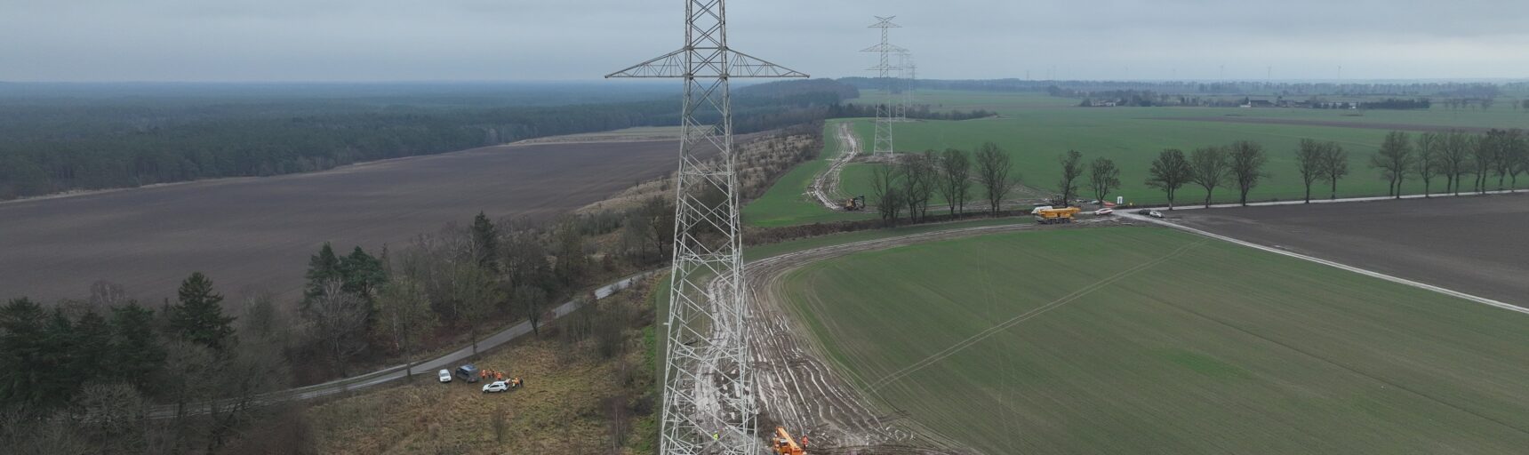 Już 100 konstrukcji słupowych powstało na trasie linii 400 kV Dunowo – Żydowo Kierzkowo – Piła Krzewina. Wykonawcy obu odcinków linii równocześnie kontynuują prace przy budowie fundamentów.