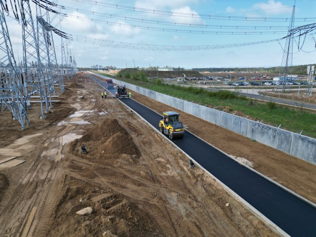 też prace związane z budową dróg wewnętrznych i drogi dojazdowej, gdzie sukcesywnie wykładana jest ostatnia warstwa nawierzchni. Wokół dróg instalowane są latarnie, a teren stacji zyskał nowe ogrodzenie zewnętrzne. W najbliższych tygodniach zamontowane zostaną też bramy wjazdowe. Prace idą zgodnie z harmonogramem, tak by na koniec roku stacja była gotowa przyjąć napięcie z Krajowego Systemu Energetycznego i umożliwić wyprowadzenie mocy z Morskich Farm Wiatrowych.